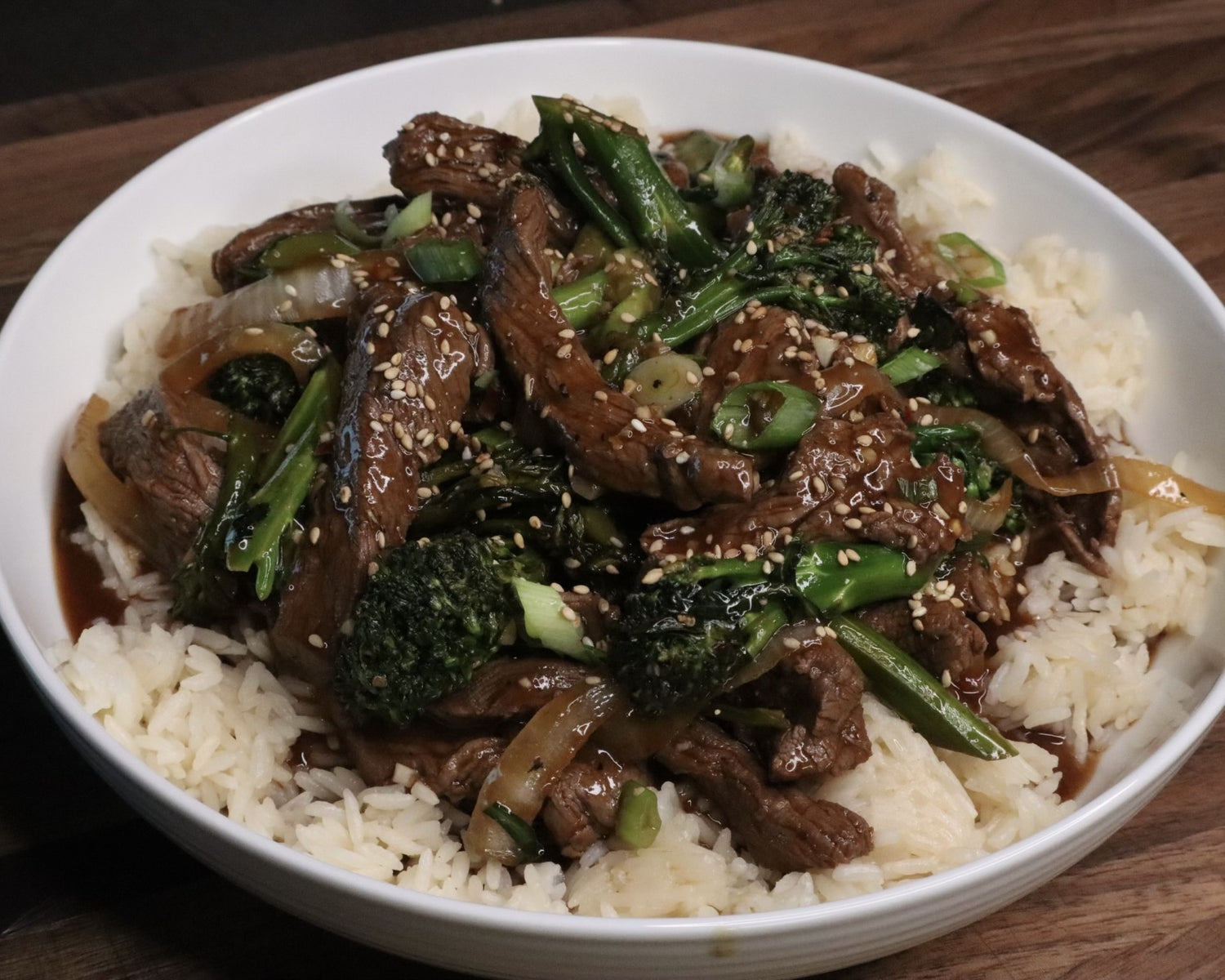 - Lastly stir in the sliced green onion and top with sesame seeds. Serve over rice or noodles.
